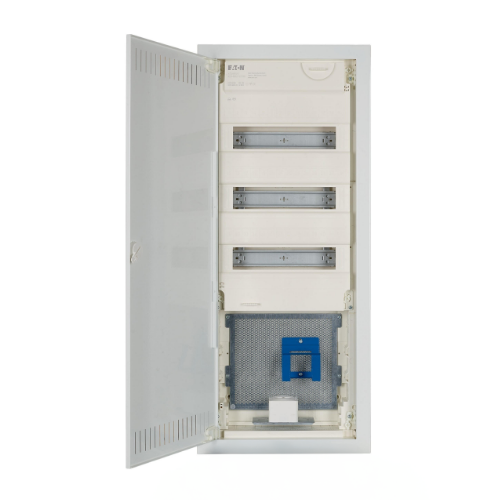 Rozdzielnica modułowa marki Eaton to zaawansowany system dystrybucji zasilania, który umożliwia zabezpieczenie, kontrolę i zarządzanie obwodami elektrycznymi w budynkach. Jest przeznaczona do rozmieszczania wyłączników, bezpieczników i innych komponentów w jednym ergonomicznym korpusie.