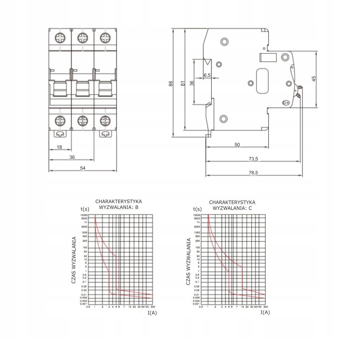 - Znamionowa zdolność wyłączeniowa: 4500/6000 A