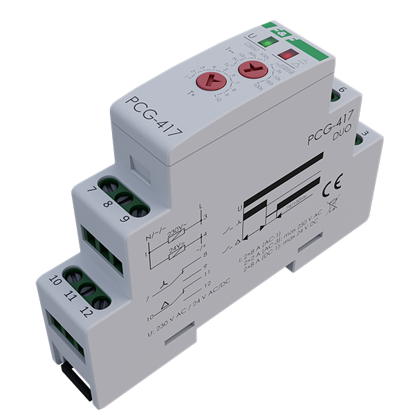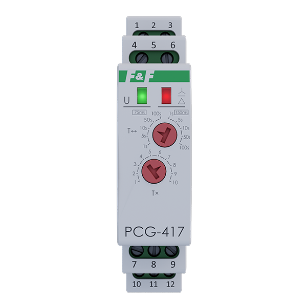 Przekaźnik czasowy PCG‑417 przeznaczony jest do sterowania stycznikowym układem przełączającym GWIAZDA–TRÓJKĄT. Przekaźnik znajduje zastosowanie w układach sterowania silników trójfazowych na zasadzie przełączania uzwojeń. W ten sposób pozwala na obniżanie prądów rozruchowych w przypadku większych jednostek silnikowych o mocach powyżej 4 kW.