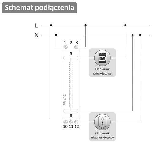 W przypadku bezpośredniego podłączenia prąd odbiornika niepriorytetowego również nie może przekroczyć 16 A. Jeżeli prąd odbiornika niepriorytetowego przekracza wartość 16 A należy zastosować dodatkowy stycznik.