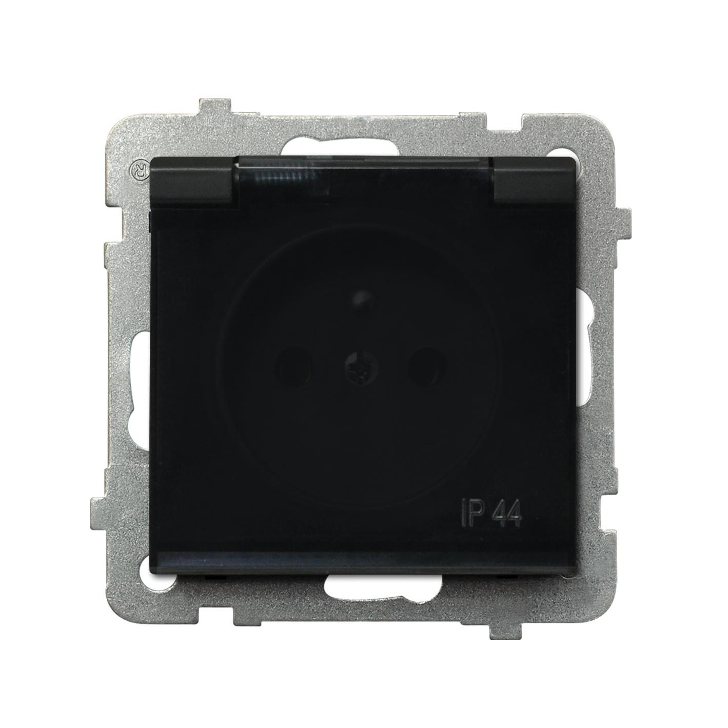 Gniazdo bryzgoszczelne z/u IP44 klapka przezroczysta czarny metalik