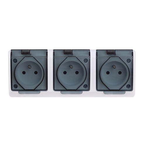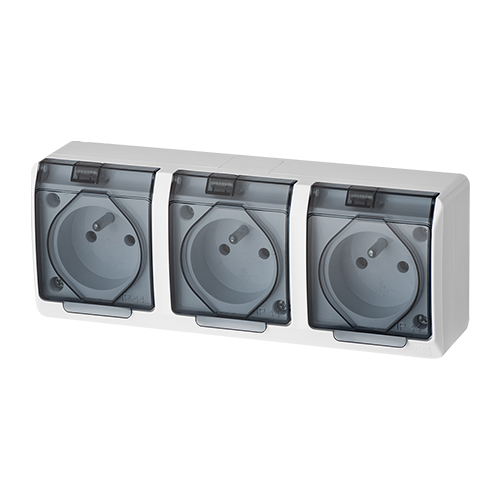 HERMES potrójne gniazdo hermetyczne natynkowe 3X2P+Z IP44 białe z klapką dymną
