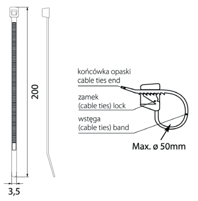 Opaska kablowa 3,5mm 200mm czarna UV 200/3,5 OZC 35‑200 /100szt./