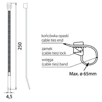 Opaska kablowa 4,5mm 250mm czarna UV 250/4,5 OZC 45‑250 /100szt./
