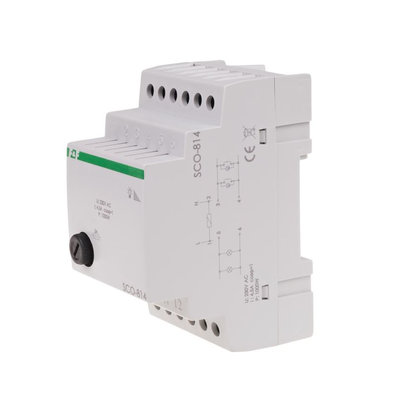 Ściemniacz oświetlenia SCO-814 230V służy do załączania i wyłączania oświetlenia żarowego i halogenowego z możliwością regulacji natężenia tego oświetlenia za pomocą dowolnego włącznika chwilowego (dzwonkowego).