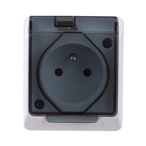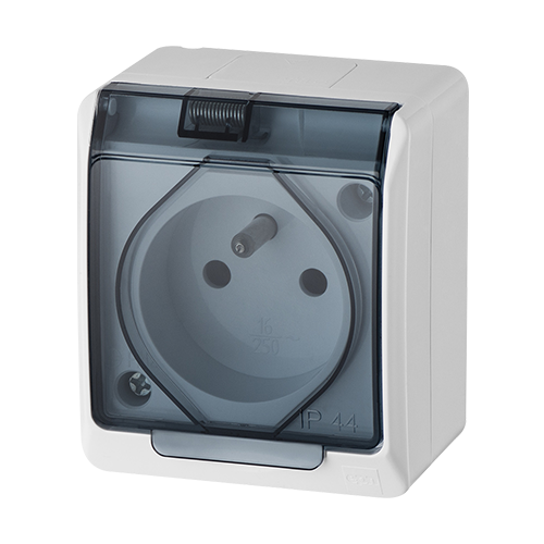HERMES pojedyncze gniazdo hermetyczne natynkowe 2P+Z IP44 białe z klapką dymną