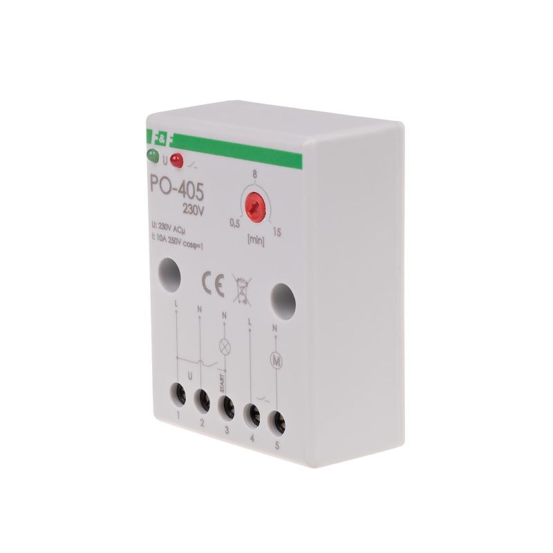 Podanie napięcia sterującego S na przekaźnik powoduje jego zadziałanie i załączenie napięcia na sterowanym odbiorniku. Po zaniku napięcia sterującego działanie odbiornika jest podtrzymywane przez czas podtrzymania t (nastawiany potencjometrem). Po czasie t wyłączenie sterowanego odbiornika nastąpi automatycznie. W przypadku ponownego podania napięcia sterującego S przed upływem nastawionego czasu przekaźnik realizuje swoją funkcje pracy od początku.