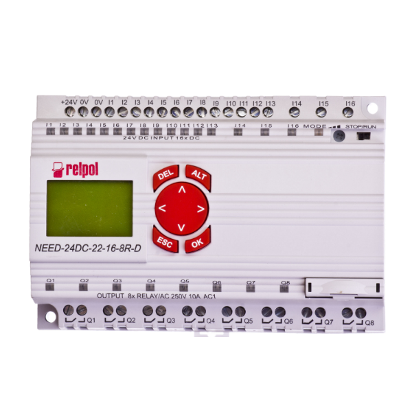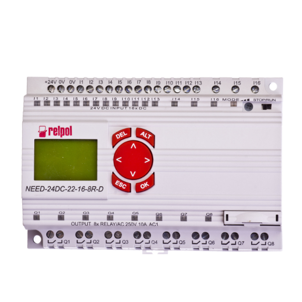 Urządzenie posiada również wbudowany trójkolorowy wskaźnik LED, dzięki któremu można uzyskać informacje dotyczące stanu samego przekaźnika, ale ma też wbudowane zielone i żółte diody LED wskazujące odpowiednio stan wejść i wyjść przekaźnika. NEED – przekaźnik programowalny z wyświetlaczem LCD umożliwia programowanie w dwóch językach – LAD oraz STL. Ma 13 wejść cyfrowych oraz 3 analogowo-cyfrowe, dzięki czemu znajduje szerokie zastosowanie we wszelkiego rodzaju sterowaniach. Do przekaźnika dedykowany jest darmowy program PC NEED – umożliwiający, w bardzo łatwy sposób, tworzenie aplikacji na bazie schematu elektrycznego.