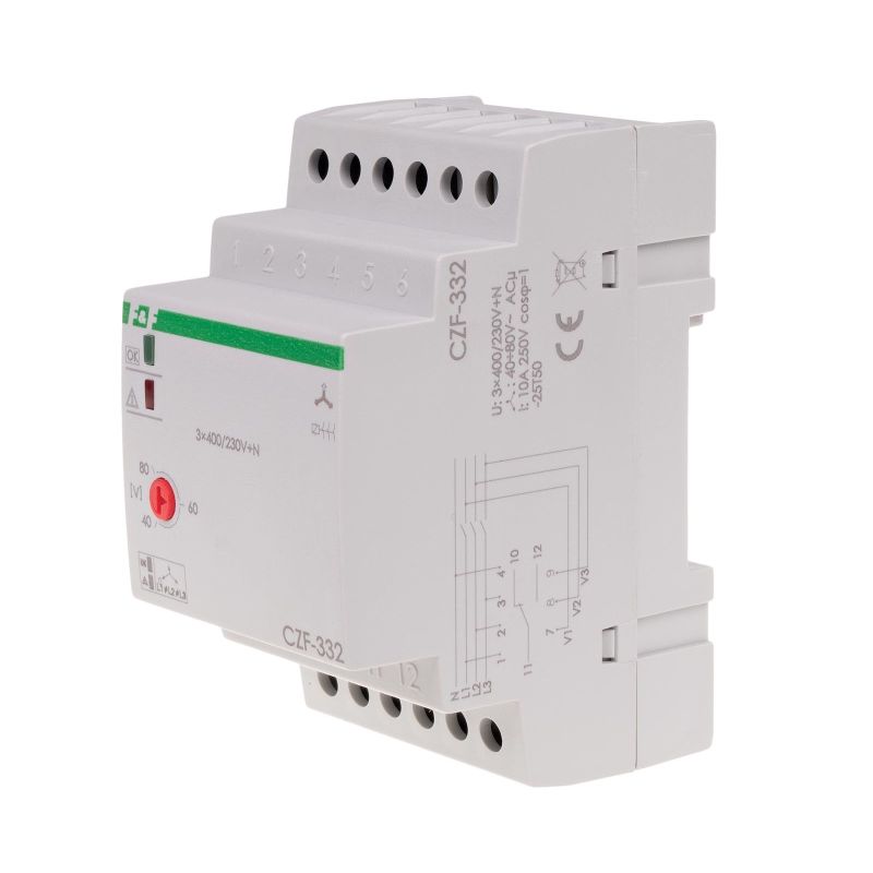 Czujnik zaniku fazy z kontrolą styków stycznika przeznaczony jest do zabezpieczenia silników elektrycznych zasilanych z sieci trójfazowej w przypadku zaniku napięcia w co najmniej jednej fazie lub asymetrii napięć między fazami oraz w sytuacji uszkodzenia styków stycznika załączającego, co grozi zniszczeniem silnika.
