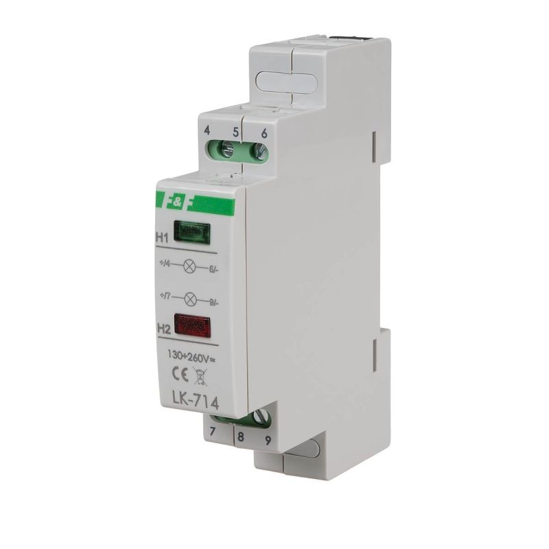 Lampka sygnalizacyjna LK-714 sygnalizuje stany wyszczególnionych obwodów lub odbiorników, np. zamknięte - otwarte; praca - przerwa, itp.