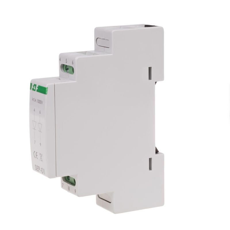 SEP-01 służy do separacji sygnałów sterujących w układach automatyki z wydzielonymi podgrupami sterowania i sterowaniem centralnym.