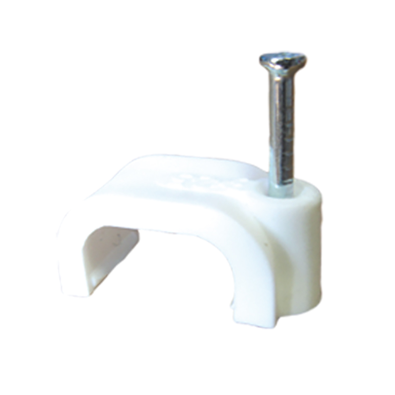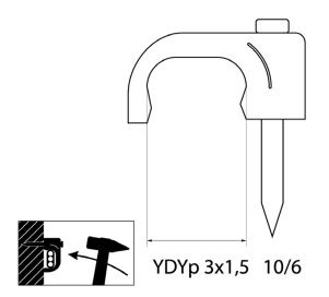 Uchwyty kablowe z wbitym gwoździem hartowanym typu "FLOP" do kabli o przekroju okrągłym i płaskim umożliwiają prosty i szybki montaż przewodów do ścian budynków. Uchwyty kablowe z gwoździem typu FLOP, przeznaczone są do mocowania przewodów lub poszczególnych żył kabla do podłoża za pomocą gwoździa.