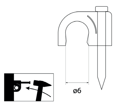 Uchwyty kablowe z wbitym gwoździem hartowanym typu "FLOP" do kabli o przekroju okrągłym i płaskim umożliwiają prosty i szybki montaż przewodów do ścian budynków. Uchwyty kablowe z gwoździem typu FLOP, przeznaczone są do mocowania przewodów lub poszczególnych żył kabla do podłoża za pomocą gwoździa.