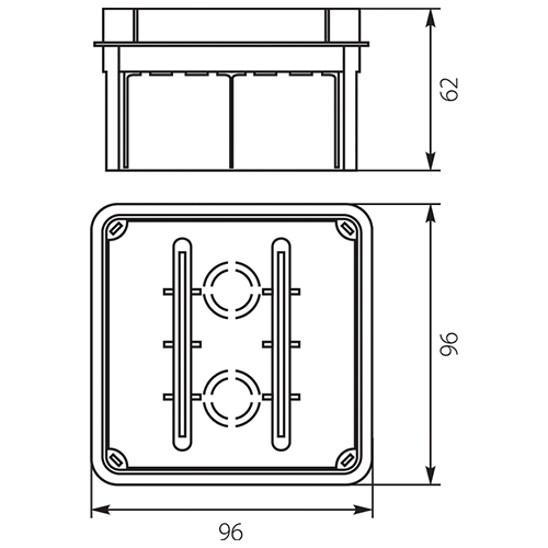 Puszka podtynkowa 96x96x62mm pomarańczowa Pp/t 3 11.3
