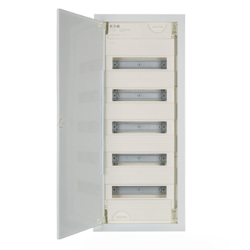 Rozdzielnica modułowa marki Eaton to zaawansowany system dystrybucji zasilania, który umożliwia zabezpieczenie, kontrolę i zarządzanie obwodami elektrycznymi w budynkach. Jest przeznaczona do rozmieszczania wyłączników, bezpieczników i innych komponentów w jednym ergonomicznym korpusie.
