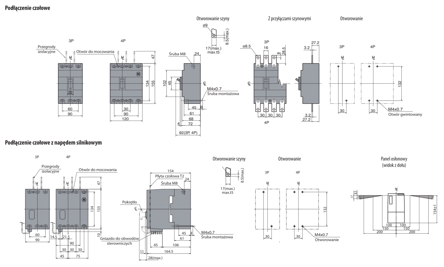 Wersja wykonania danego kompaktowego wyłącznika mocy: trój- i czterobiegunowe.