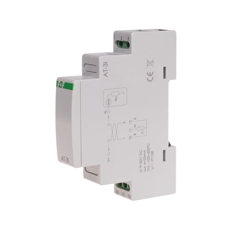 Przetwornik temperatury AT-3I mierzy temperaturę za pomocą zewnętrznego czujnika temperatury PT-100. Następnie przekształca mierzoną wielkość do unifikowanego analogowego wyjściowego sygnału prądowego w zakresie 4÷20 mA.