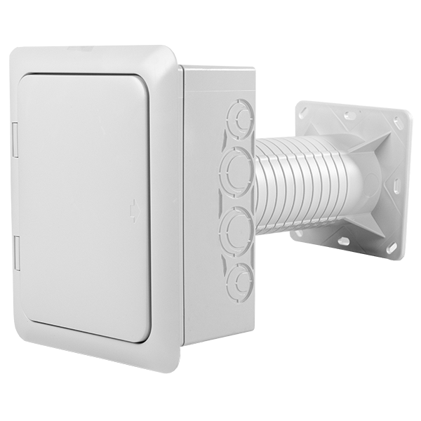 - Zestaw zawiera puszkę, tubus nośny, izolację zewnętrzną i wewnętrzną, opakowanie montażowe, płytę montażową otwierane wieko oraz śruby ze stali nierdzewnej.
