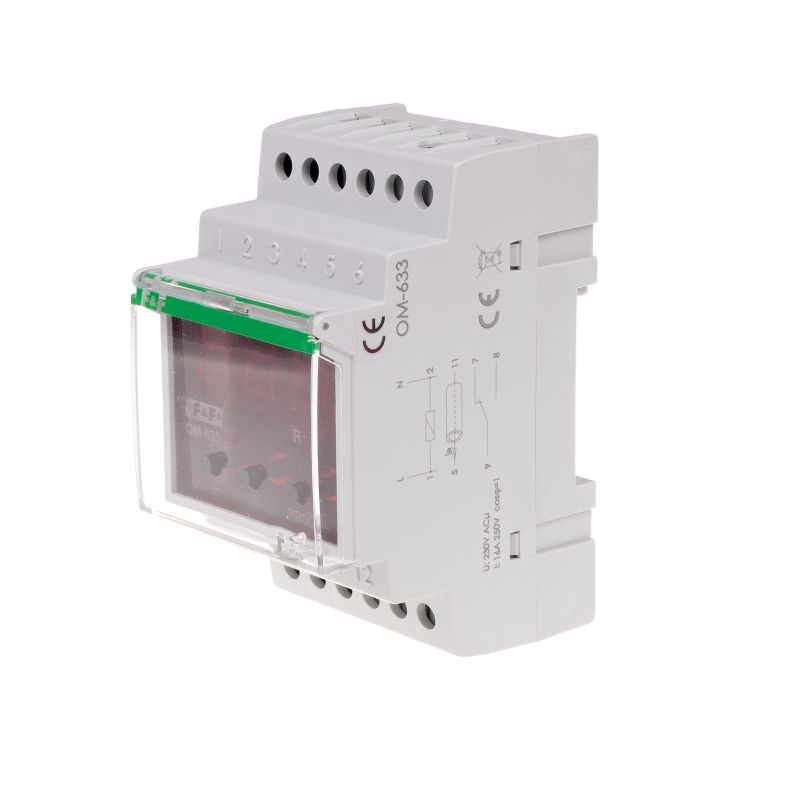 Ogranicznik mocy OM-633 automatycznie odłącza zasilanie obwodu instalacji elektrycznej w przypadku przekroczenia ustawionej wartości mocy pobieranej przez podłączone odbiorniki. Kontroluje ich napięcie zasilania i zabezpiecza je przed skutkami wzrostu lub spadku napięcia poza ustawione wartości.