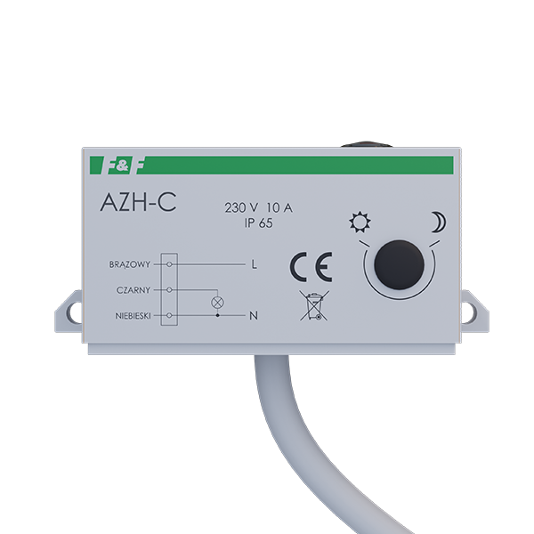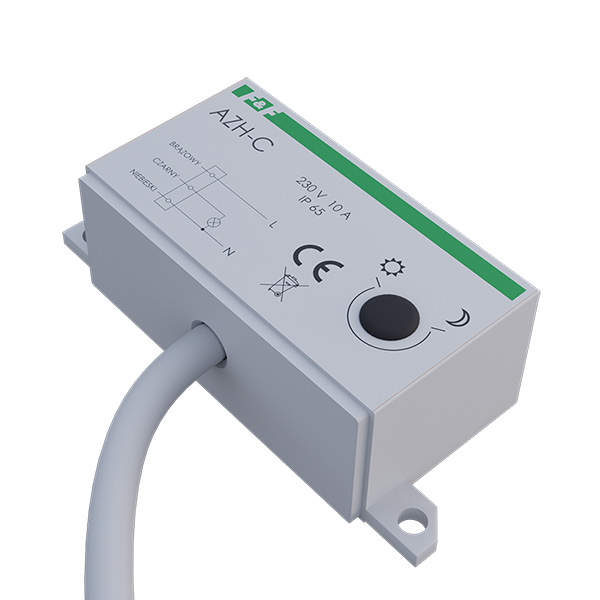Włącznik zmierzchowy AZH‑C posiada układ opóźniający załączenie i wyłączenie oświetlenia, który niweluje wpływ zakłóceń (np. wyładowań atmosferycznych) na pracę automatu.