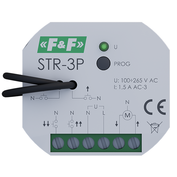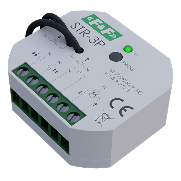 Sterownik rolet do montażu podtynkowego STR‑3P przeznaczony jest do sterowania roletami, żaluzjami oraz innymi osłonami okiennymi napędzanymi przez silniki elektryczne jednofazowe 230 V AC. Sterownik STR‑3P ma uniwersalny charakter pozwala na realizację sterowania lokalnego oraz centralnego.