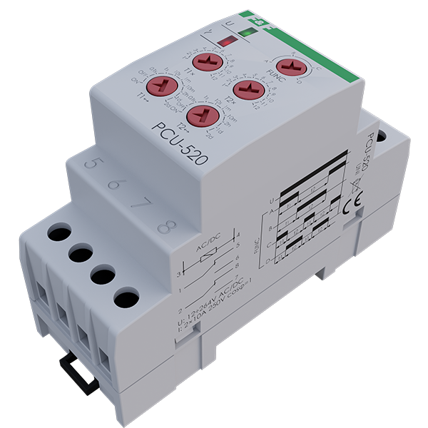PCU‑520 to wielofunkcyjny przekaźnik czasowy asymetryczny, pozwalający na nastawę dwóch różnych czasów tj. czasu pracy i czasu przerwy, przeznaczony do realizacji funkcji czasowych w układach automatyki i sterowania, zasilany napięciem 12÷264 V AC/DC.