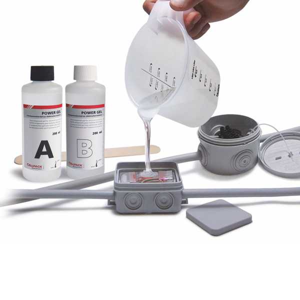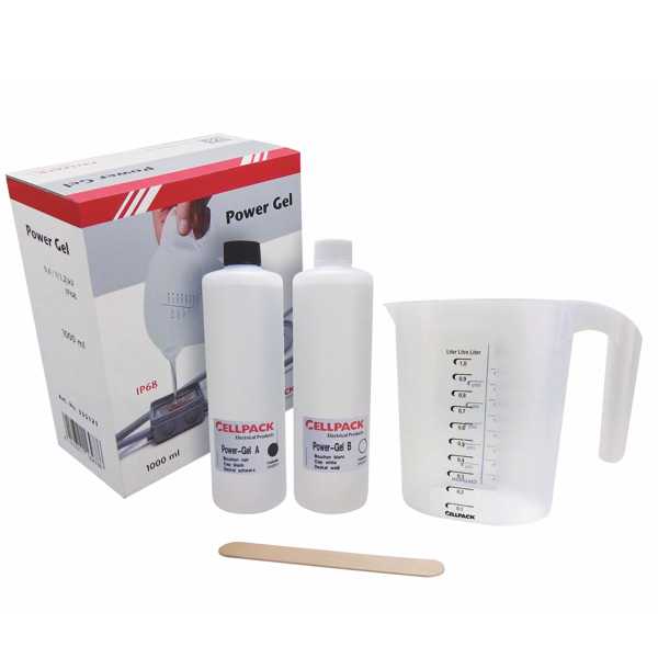 Dwuskładnikowy żel izolacyjny Power Gel w butelkach do indywidualnego dozowania, z dołączonym pojemnikiem do mieszania i mieszadłem