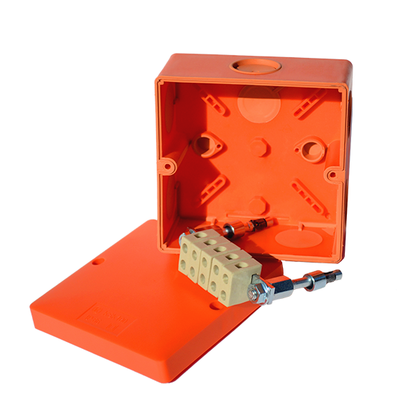 - Puszka jest wyposażona w ceramiczną listwę 5‑ polową i zachowuje funkcjonalność w razie pożaru.