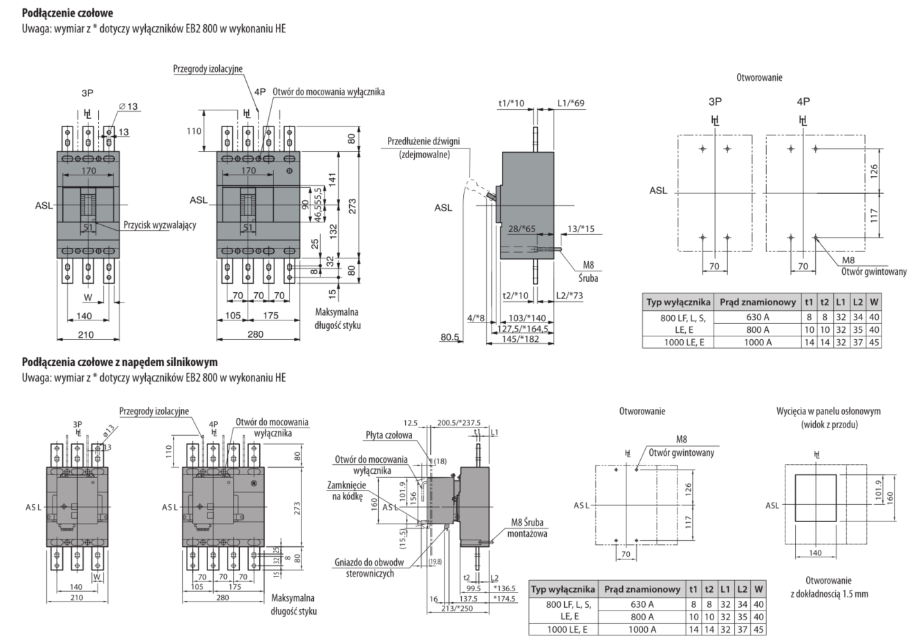 - Wyłączniki mają możliwość zdalnego sterowania za pomocą napędów silnikowych.