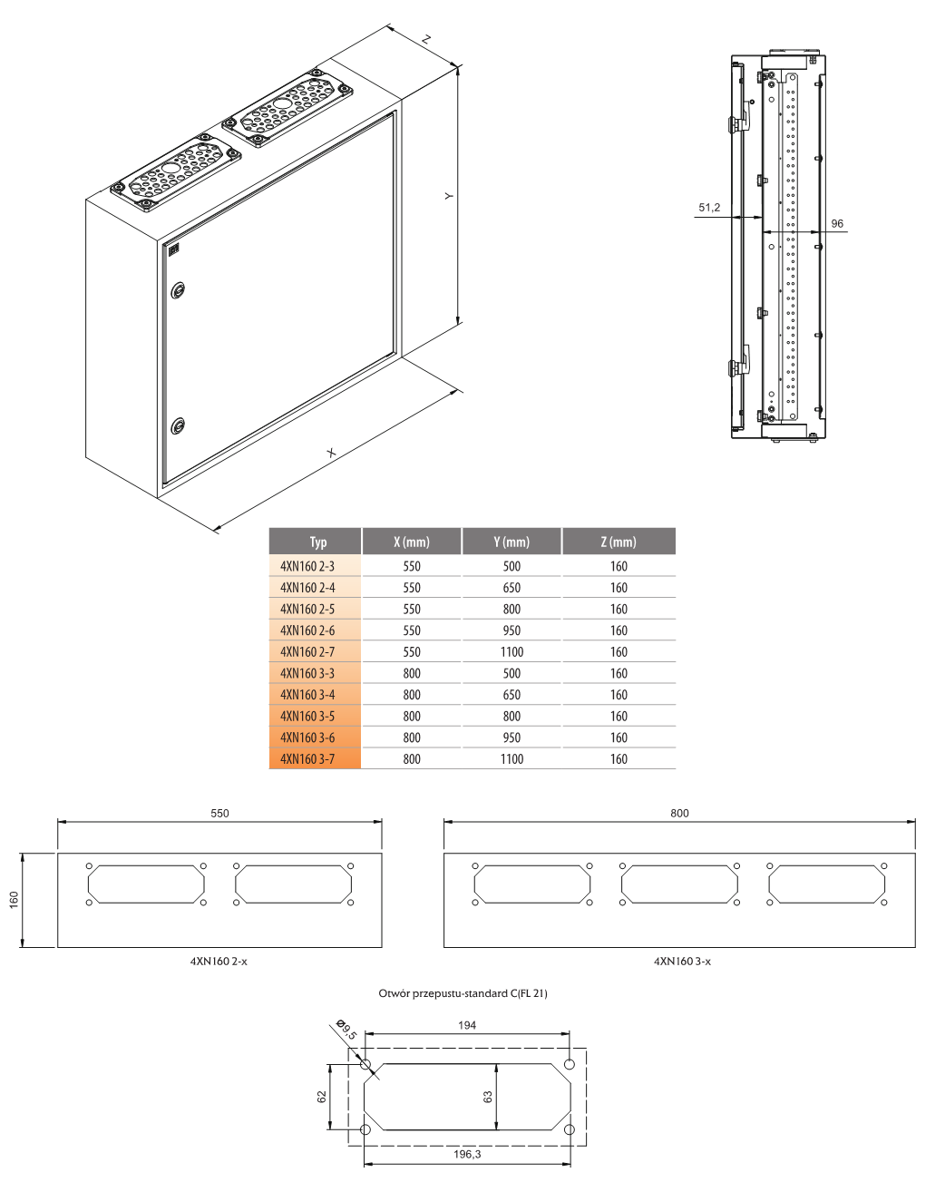 Typoszereg i sposób oznaczania obudów 4XN160/4XP160