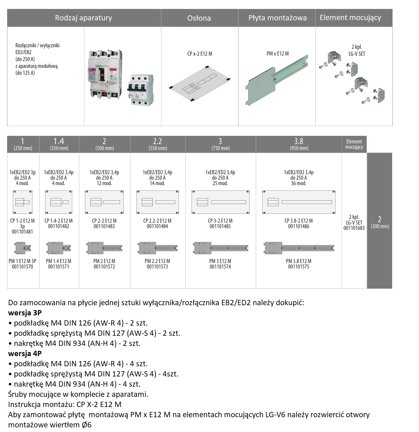 Do zamocowania na płycie jednej sztuki wyłącznika/rozłącznika EB2/ED2 należy dokupić: