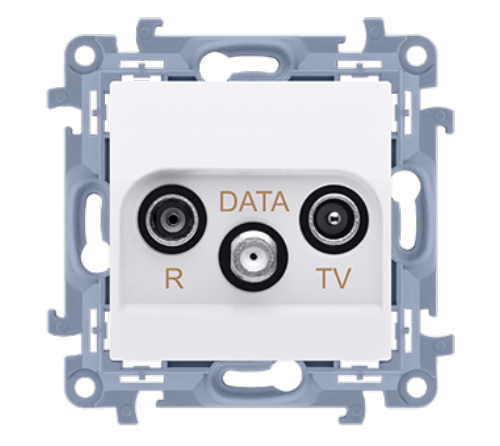 gniazda podwójnego sprawia, że zajmuje on w puszce instalacyjnej tylko 11 mm. Mocno rozpierające łapki pozwalają na pewne zamocowanie modułu w puszce.