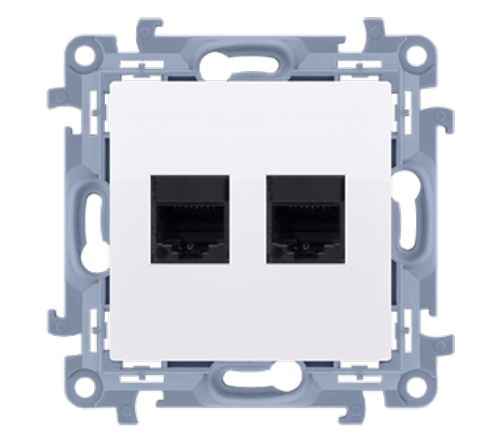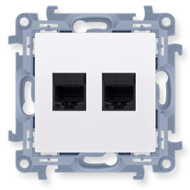 gniazda podwójnego sprawia, że zajmuje on w puszce instalacyjnej tylko 11 mm. Mocno rozpierające łapki pozwalają na pewne zamocowanie modułu w puszce.
