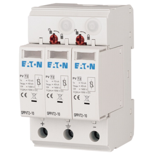 W instalacjach fotowoltaicznych z panelami na dachu bez instalacji odgromowej wystarcza ogranicznik klasy II (dawne C), SPPVT2 od EATON. Gdy panele są wolnostojące albo budynek posiada instalację odgromową, wtedy należy zastosować ogranicznik typu 1+2, SPPVT12 od EATON.