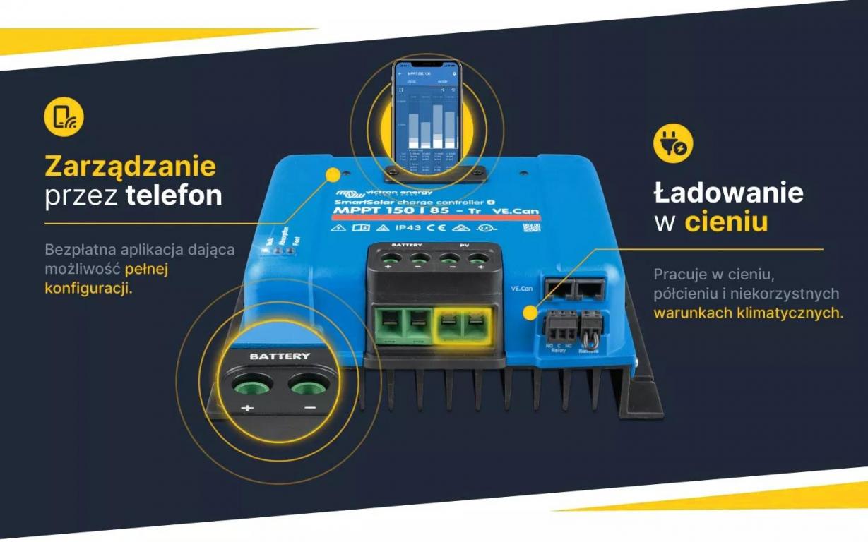 Regulatory ładowania w wersji Smart Holenderskiego producenta Victron Energy to najbardziej zaawansowane urządzenia dostępne na rynku. Posiadają ultra szybki system śledzenia punktu mocy MPPT gwarantujący nawet do 50% więcej mocy niż w tradycyjnych regulatorach PWM. Umożliwiają również ładowanie w cieniu jak i w niekorzystnych warunkach oświetleniowych jakimi jest poranek oraz późne popołudnie.