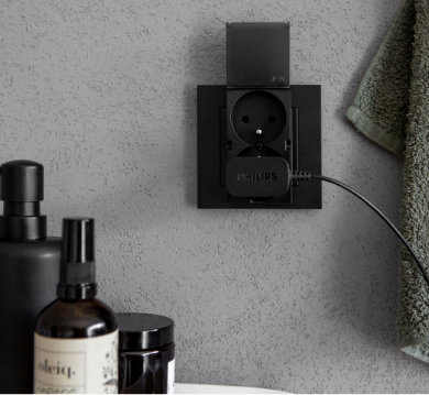 na pół klapki gniazd z serii Simon 55 są bryzgoszczelne.