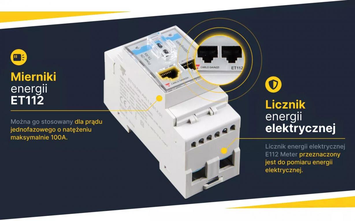 Licznik energii elektrycznej E112 Meter firmy Victron Energy przeznaczony jest do pomiaru energii elektrycznej np bezpośrednio w skrzynce rozdzielczej lub jako licznik produkcji mocy chwilowej i kWh przez elektrownię słoneczną. Jednym z najważniejszych zastosowań jest pomiar prądu w magazynach energii tak aby energia w akumulatorach była wykorzystywana kiedy elektrownia słoneczne sieciowa nie produkuje prądu np w pochmurny dzień lub nocą. Można go łączyć w zależności od wersji przewodem RS486 lub Ethernet. Mierniki energii ET112 (dla prądu jednofazowego o natężeniu maks. 100A) oraz ET340 (dla prądu trójfazowego o natężeniu maks. 65A) zwykle stosuje się w magazynach energii ESS.