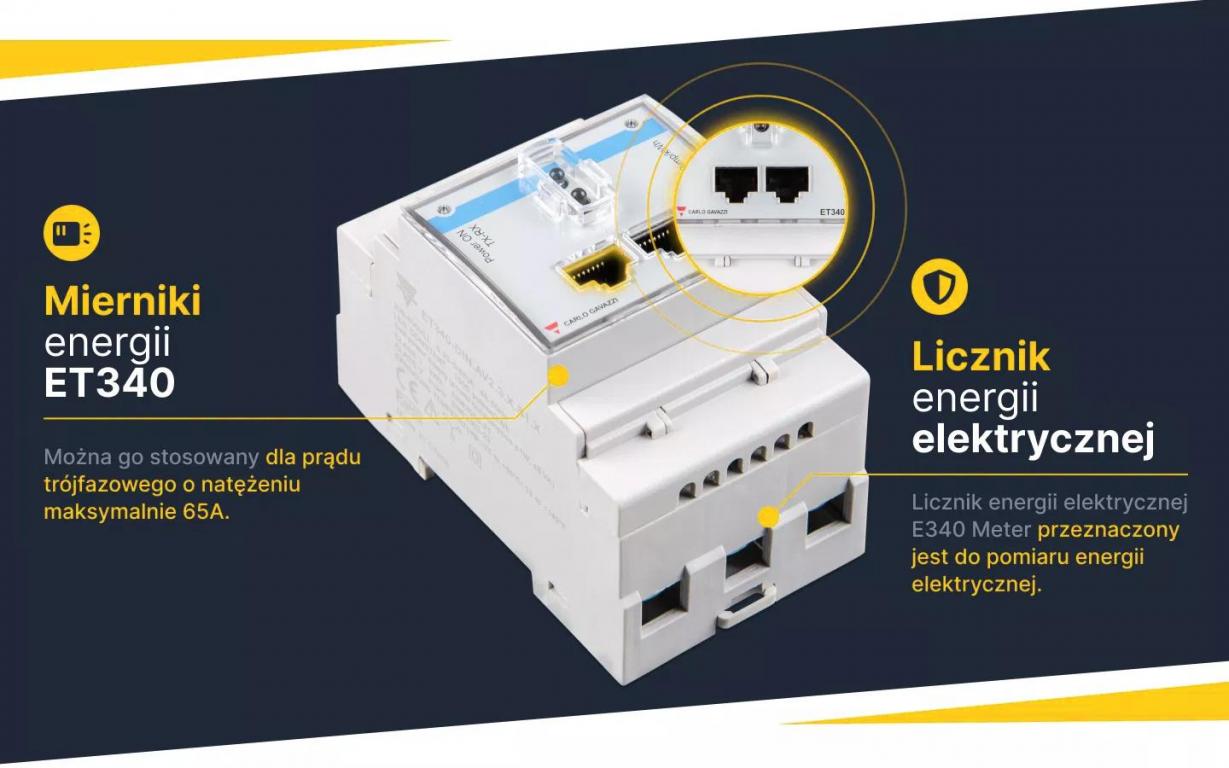Licznik energii elektrycznej E112 Meter firmy Victron Energy przeznaczony jest do pomiaru energii elektrycznej np bezpośrednio w skrzynce rozdzielczej lub jako licznik produkcji mocy chwilowej i kWh przez elektrownię słoneczną. Jednym z najważniejszych zastosowań jest pomiar prądu w magazynach energii tak aby energia w akumulatorach była wykorzystywana kiedy elektrownia słoneczne sieciowa nie produkuje prądu np w pochmurny dzień lub nocą. Można go łączyć w zależności od wersji przewodem RS486 lub Ethernet. Mierniki energii ET112 (dla prądu jednofazowego o natężeniu maks. 100A) oraz ET340 (dla prądu trójfazowego o natężeniu maks. 65A) zwykle stosuje się w magazynach energii ESS.