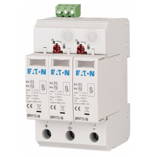 W instalacjach fotowoltaicznych z panelami na dachu bez instalacji odgromowej wystarcza ogranicznik klasy II (dawne C), SPPVT2 od EATON. Gdy panele są wolnostojące albo budynek posiada instalację odgromową, wtedy należy zastosować ogranicznik typu 1+2, SPPVT12 od EATON.