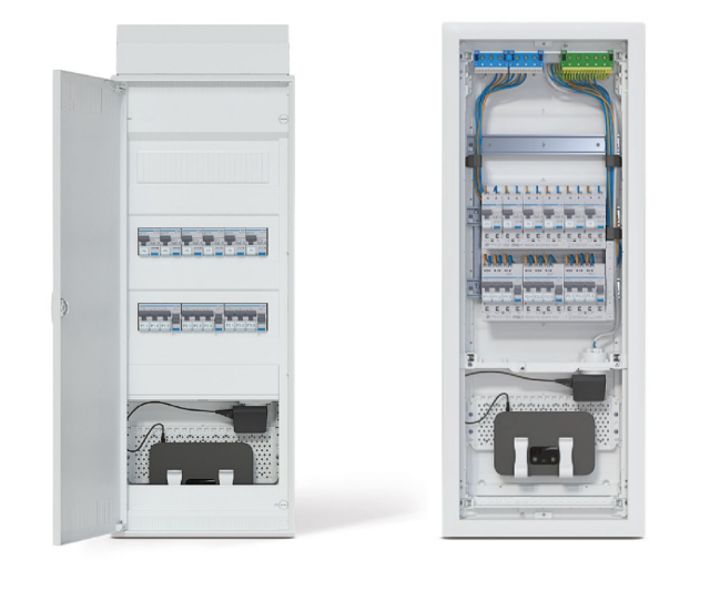 Rozdzielnica elektryczna i multimedialna w jednej obudowie.