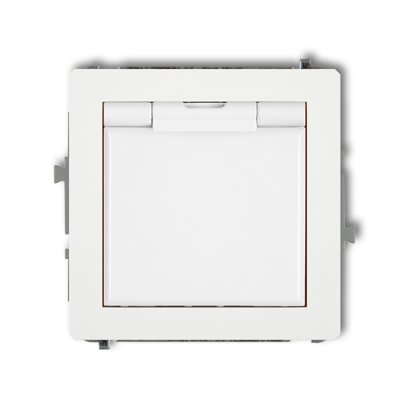 Mechanizm gniazda bryzgoszczelnego z uziemieniem 2P+Z (klapka biała, przesłony torów prądowych)