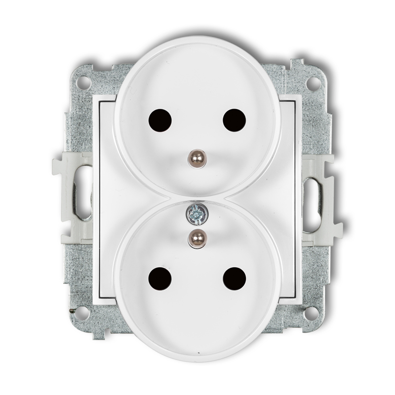 Mechanizm gniazda podwójnego do ramki z uziemieniem 2x(2P+Z) (przesłony torów prądowych)