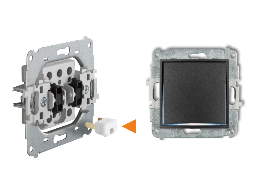 Moduły podświetlające LED do łączników są dostępne w kolorach: biały, zielony, niebieski, czerwony. Moduł podświetlający ułatwia zlokalizowanie łącznika w ciemności.