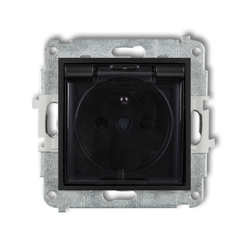 Mechanizm gniazda bryzgoszczelnego z uziemieniem 2P+Z (klapka dymna, przesłony torów prądowych)