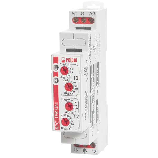 Przekaźnik czasowy 1P 1sek-10dni 12-240V AC/DC 50/60 Hz opóźnione załączanie i wyłączenie