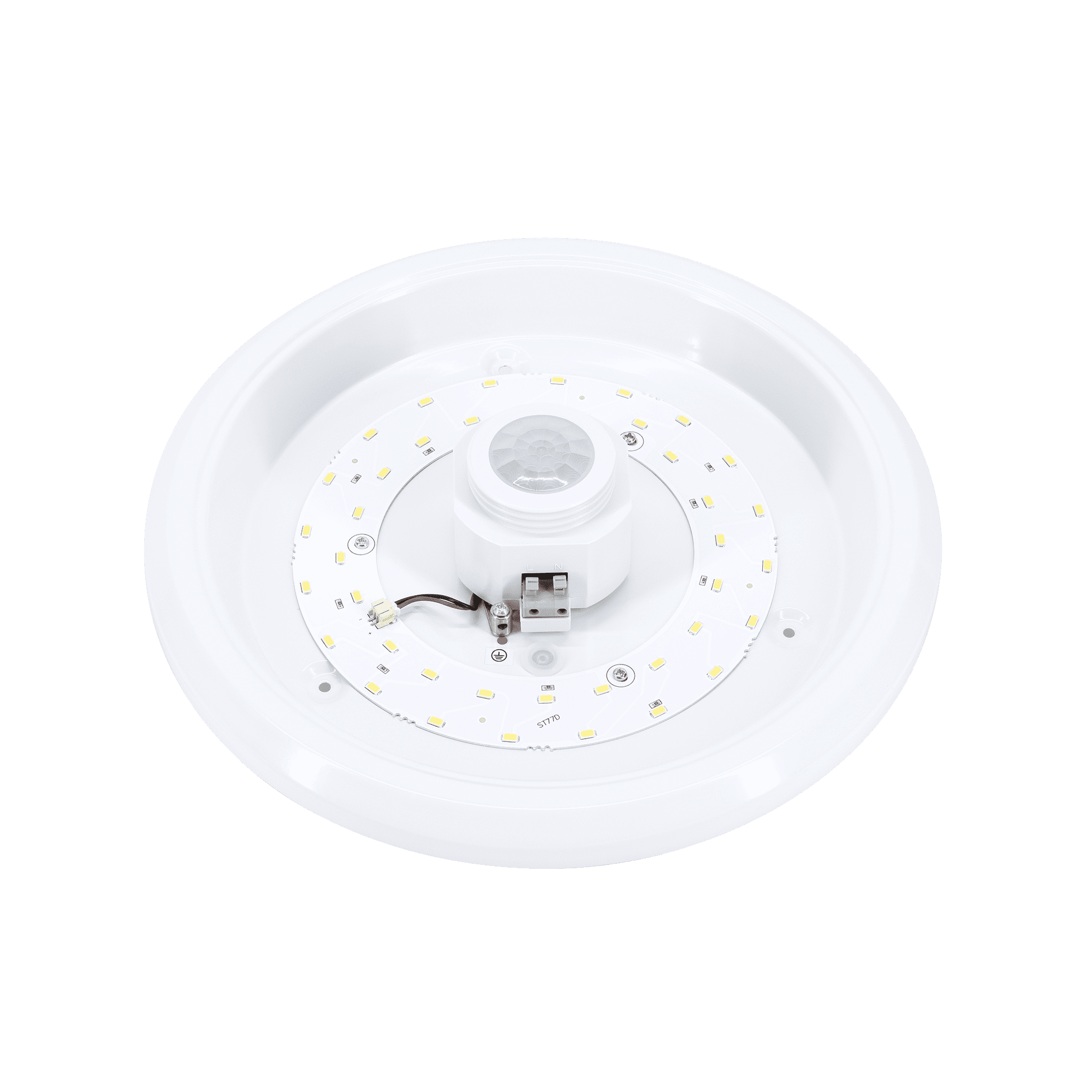 Plafoniera LED wyposażona w czujnik ruchu na podczerwień PIR, z możliwością regulacji czasu świecenia oraz progu zadziałania w zależności od natężenia światła. Maksymalny zasięg detekcji to 6m, a zalecana wysokość instalacji max. 4m. Idealnie sprawdzi się w zastosowaniu na klatkach schodowych i korytarzach.