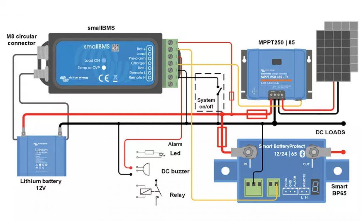 SmallBMS może zastąpić VE.Bus BMS w kilku zastosowaniach. Nie nadaje się jednak do użytku z inwerterami/ VE.Bus MultiPlus i Quattro: nie ma interfejsu VE.Bus. SmallBMS jest przeznaczony do użytku z akumulatorami Victron Smart LiFePo4 z okrągłymi złączami M8. SmallBMS ma trzy wyjścia, podobne do VE.Bus BMS.