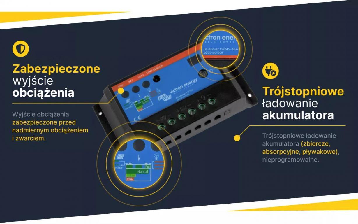 ładowania PWM-Light 5/10/20A w zależności od mocy to popularne regulatory z systemem ładowania PWM dostarczane przez Holenderską firmę Dedykowane są do małych systemów fotowoltaicznych pracujących z jednym i napięciem 12V aczkolwiek możliwa jest ich konfiguracja przy zastosowaniu napięcie 24V. Urządzenie posiada wbudowany czujnik temperatury do optymalizacji napięcia ładowania. 3 stopniową charakterystykę ładowania zwiększająca szybkość ładowania a także pełne zabezpieczenie: nadprądowe, przeciwzwarciowe i odwrotną polaryzację. Te zabezpieczenia czynią z niego trudny sprzęt uszkodzenia.