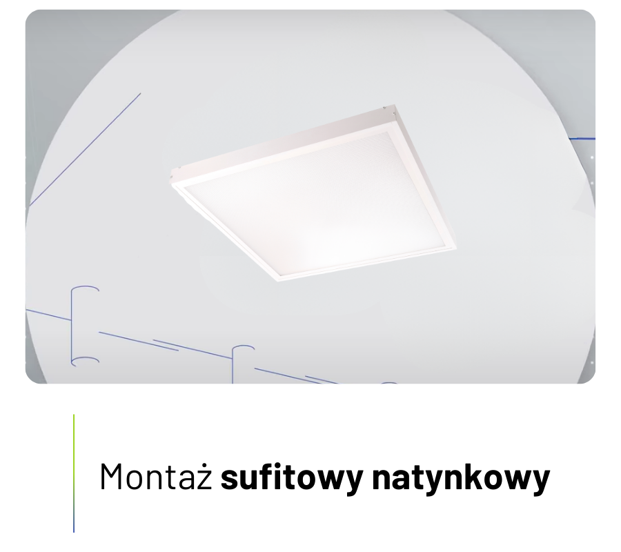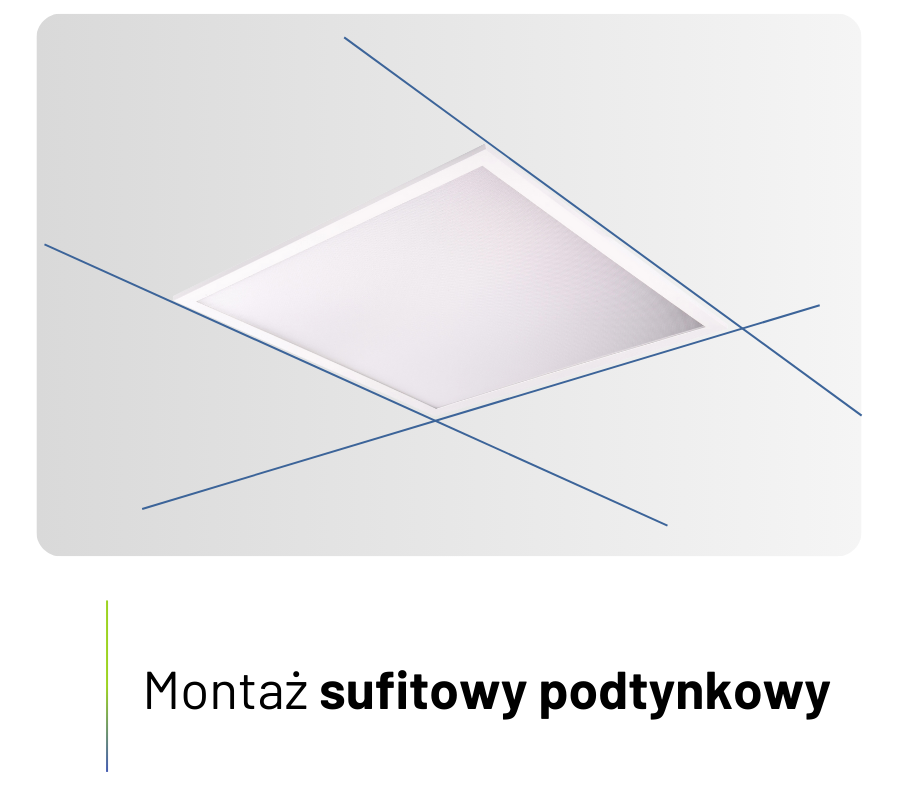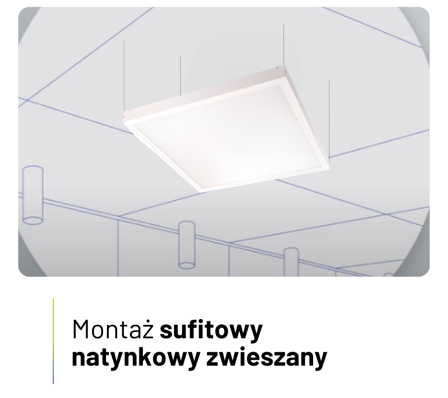 Montaż sufitowy wpuszczany, natynkowy lub na zwieszakach - regulowany