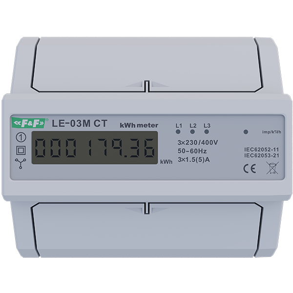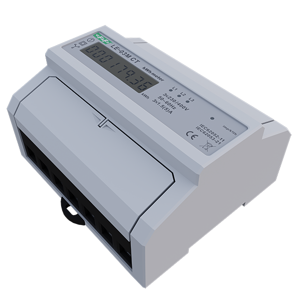 Licznik energii elektrycznej LE‑03M to licznik prądu przemiennego trójfazowego w układzie półpośrednim do montażu na szynie DIN.